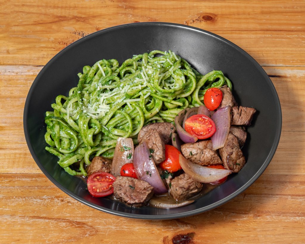 Tallarines Verdes con Lomo Saltado